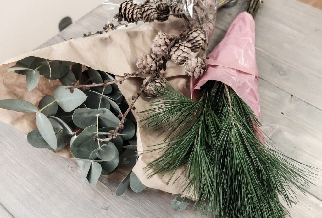 Det blev en eucalyptus bukett, kottar och någon slags tall?